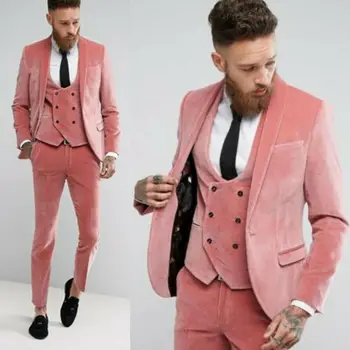 Best Offer 4041a Light Blush Pink Velvet Slim Fit Men Suit Wedding Tuxedos Best Man Formal Suit Groom Blazer 3 Pcs Jacket Vest Pant Ropa Hombre Cicig Co